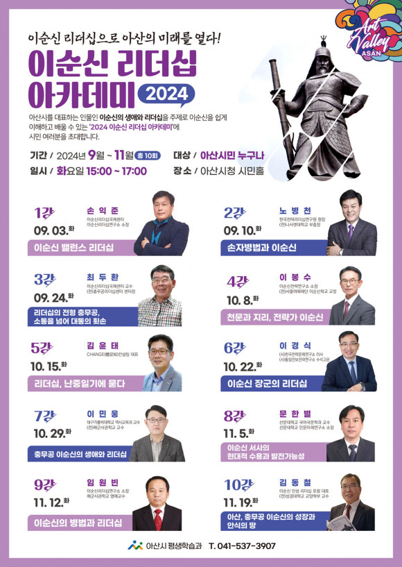 À̼ø½Å °ü·Ã Àü¹®°¡¸¦ ÃʺùÇØ ÃÑ 10°À¸·Î ÁøÇàµÇ´Â À̼ø½Å ¸®´õ½Ê ¾ÆÄ«µ¥¹Ì´Â 9¿ù 3ÀÏ Á¦1°À» ½ÃÀÛÀ¸·Î 11¿ù 19ÀϱîÁö ¾Æ»ê½Ãû ½Ã¹ÎȦ¿¡¼ ¿ÀÈÄ 3½Ã¿¡ ÁøÇàµÈ´Ù.
