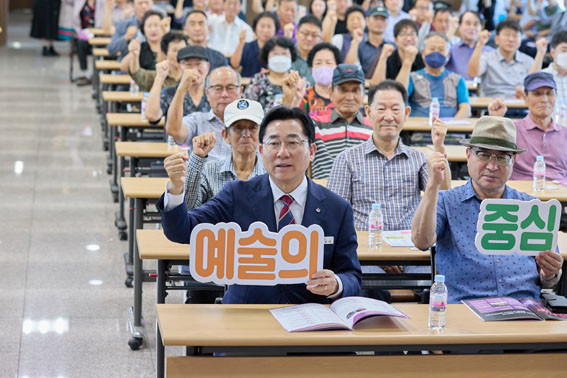 ¹Ú ½ÃÀåÀº °£´ãȸ ½ÃÀÛ¿¡ ¾Õ¼ ¡°¾Æ»ê½Ã´Â ¿Â¾ç4µ¿ÀÌ Ç°Àº ½ÅÁ¤È£¸¦ °ÅÁ¡À¸·Î ¸íǰ ¹®È¿¹¼ú µµ½Ã·Î °Åµì³ª°í ÀÖ´Ù¡±¸é¼ ¡°¡®¾ÆÆ®¹ë¸® ¾Æ»ê¡¯À¸·Î ÀÌ·ï³½ ºñ¾àÀûÀÎ µµ½Ãºê·£µå »ó½ÂÀº ¿Â¾ç4µ¿ Áֹεé°ú ÇÔ²² ¸¸µé¾î³½ ÀÚ¶û½º·¯¿î ¼º°ú¡±¶ó°í ¸»Çß´Ù.