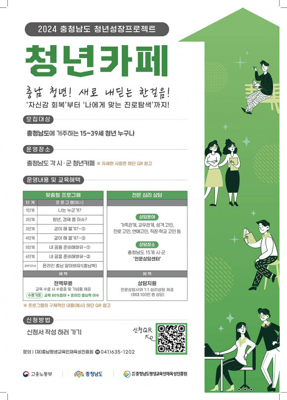 Âü¿© ½ÅûÀº ¿Â¶óÀÎÀ¸·Î Á¢¼öÇϸç, ½Åû ¹æ¹ý ¹× Áö¿ø ¿ä°Ç µî ÀÚ¼¼ÇÑ ³»¿ëÀº Ãæ³²Æò»ý±³À°ÀÎÀçÀ°¼ºÁøÈï¿ø(¢Ï041-635-1202-3) ¶Ç´Â È«º¸¹° Á¤º¸¹«´Ì(QRÄÚµå)¸¦ ÅëÇØ È®ÀÎÇÒ ¼ö ÀÖ´Ù.
