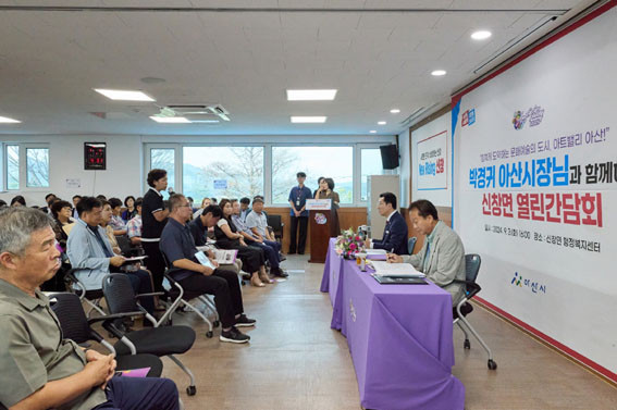 | | ¡è¡è <»çÁøÁ¦°ø=¾Æ»ê½Ã> | ¨Ï (ÁÖ)¿Â¾ç½Å¹®»ç | | ¹Ú°æ±Í ¾Æ»ê½ÃÀå°ú ½Åâ¸é ÁֹεéÀÇ 2024 ÇϹݱ⠿¸°°£´ãȸ°¡ 9¿ù 3ÀÏ ½Åâ¸é ÇàÁ¤º¹Áö¼¾ÅÍ¿¡¼ ¿·È´Ù.