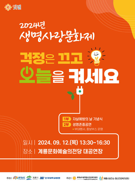 Ãæ³²µµ´Â ¿À´Â 9¿ù 12ÀÏ °è·æ¹®È¿¹¼úÀÇÀü´ç¿¡¼ ÀÚ»ì ¿¹¹æ ÀÎ½Ä °³¼± ¹× »ý¸í Á¸Áß ¹®È È®»êÀ» À§ÇÑ ¡®2024³â »ý¸í»ç¶û¹®ÈÁ¦¡¯¸¦ °³ÃÖÇÑ´Ù.