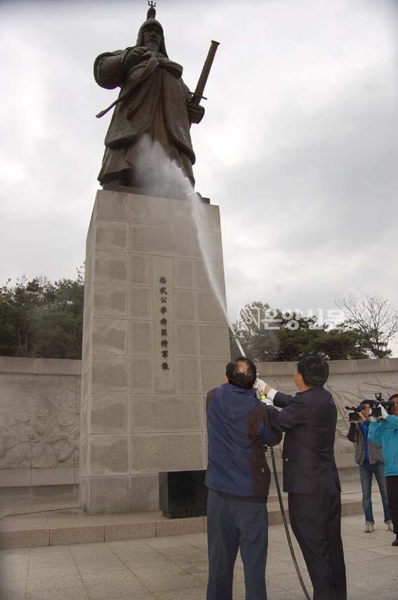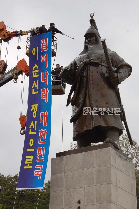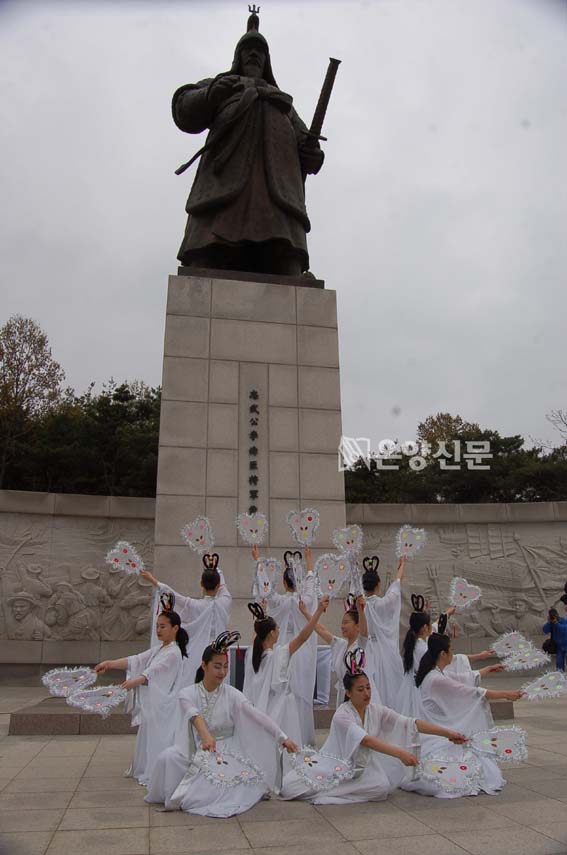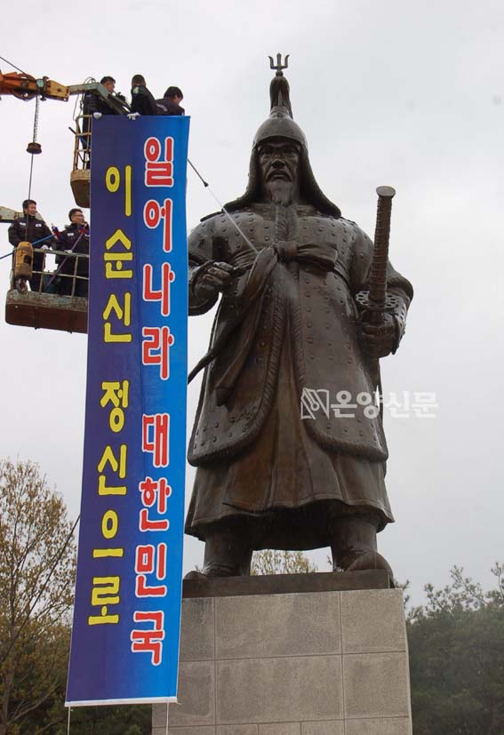 ÇÑÆí À̳¯ Ä£¼ö½ÄÀ» °¡Áø ½ÅÁ¤È£ ±¹¹Î°ü±¤ÁöÀÇ À̼ø½Å À屺 µ¿»óÀº 8.45mÀÇ ³ôÀÌ·Î ¿ª»ç¿¡¼ Â÷ÁöÇÏ´Â Ãæ¹«°øÀÇ Á¸Àç°¨À» ü°¨ÇÒ ¼ö ÀÖµµ·Ï ´ÜÀϵ¿»ó Áß ±¹³» ÃÖ´ëÀÇ ±Ô¸ð·Î °Ç¸³µÇ¾úÀ¸¸ç Á´븦 Æ÷ÇÔÇÑ ³ôÀÌ´Â 15.45m·Î À屺ÀÌ ÅÁ½ÅÇÑ 1545³âÀ» ÀǹÌÇÑ´Ù.