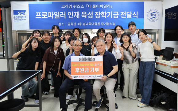 ¼øÃµÇâ´ë ¹ý°úÇдëÇпø È«¼º¿í ±³¼ö´Â ¡°¼ÒÁßÇÑ ÀåÇбÝÀ» ±âºÎÇØÁֽŠ¡®´õ Ç®¾îÆÄÀÏ·¯¡¯ ÆÀ¿¡ ±íÀÌ °¨»çµå¸°´Ù¡±¸ç ¡°À̹ø ±âºÎ±ÝÀº º¸´Ù ÈǸ¢ÇÑ °úÇмö»ç¿ä¿øÀ» ¾ç¼ºÇÏ´Â µ¥ »ç¿ëÇÒ ¿¹Á¤À̸ç, ÀçÇлýµéÀº ¿©Å ¹è¿î ÀÚ¿¬°úÇÐ, µðÁöÅÐ Æ÷·»½Ä, ÇÁ·ÎÆÄÀϸµ µî ¸ðµÎ ÇϳªÀÇ ¿ÏÀüÇÑ ¼ö»ç¸¦ ¿Ï¼ºÇÏ´Â ¼ÒÁßÇÑ Ãʼ®À̶õ Á¡À» ÀØÁö ¸»°í Çо÷¿¡ Á¤ÁøÇØÁÖ±æ ¹Ù¶õ´Ù¡±°í ¸»Çß´Ù.