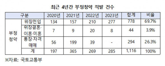 ±¹Åä±³ÅëÀ§¿øÈ¸ ¼Ò¼Ó º¹±â¿Õ ´õºÒ¾î¹ÎÁÖ´ç ±¹È¸ÀÇ¿ø(¾Æ»ê½Ã°©)ÀÌ 9¿ù 6ÀÏ ±¹Åä±³ÅëºÎ·ÎºÎÅÍ Á¦Ãâ¹ÞÀº ¡®ºÒ¹ýÀü¸Å ¹× °ø±ÞÁú¼ ±³¶õÇàÀ§ Àû¹ß ÇöȲ¡¯ ÀÚ·á¿¡ µû¸£¸é, 2020³âºÎÅÍ 2023³â±îÁö ÃÖ±Ù 4³â°£ ±¹ÅäºÎ¿Í Çѱ¹ºÎµ¿»ê¿øÀÇ ÇÕµ¿Á¡°Ë °á°ú·Î Àû¹ßµÈ ºÎÁ¤Ã»¾à °Ç¼ö°¡ ÃÑ 1õ116°Ç¿¡ ´ÞÇß°í, ÀÌÁß 778°Ç(69.7%)ÀÌ À§ÀåÀüÀÔÀÎ °ÍÀ¸·Î µå·¯³µ´Ù.