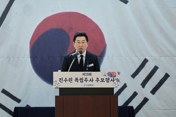 Áø¼ö¸° µ¶¸³Åõ»çÀÇ ¼°ÅÀÏÀ» ¸Â¾Æ Áø¼ö¸° µ¶¸³Åõ»çÀÇ Èñ»ý°ú Çå½ÅÀ» ±â¾ïÇϰí Ã߸ðÇϰíÀÚ ¸¶·ÃµÈ À̳¯ Ã߸ðÁ¦¿¡´Â ¹Ú°æ±Í ½ÃÀå, È«¼ºÇ¥ ¾Æ»ê½ÃÀÇȸ ÀÇÀåÀ» ºñ·ÔÇÑ À¯°¡Á·, »çȸ´ÜüÀå, ¿°Æ¼ÃʵîÇб³ ÀçÇлý µî 300¿© ¸íÀÌ Âü¼®Çß´Ù.