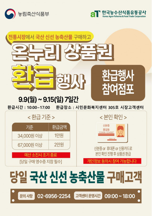 ¿Â¾ç¿Âõ½ÃÀå¿¡¼ ±¹»ê ³ó¡¤Ãà»ê¹°À» ±¸¸ÅÇÑ ¼ÒºñÀÚ´Â ¿µ¼öÁõ°ú ½ÅºÐÁõÀ» °¡Áö°í ½ÃÀå ³» ȯ±Þ ºÎ½º¿¡¼ º»ÀÎ È®ÀÎ ÈÄ ¿Â´©¸®»óǰ±ÇÀ¸·Î ȯ±Þ¹ÞÀ¸¸é µÈ´Ù.