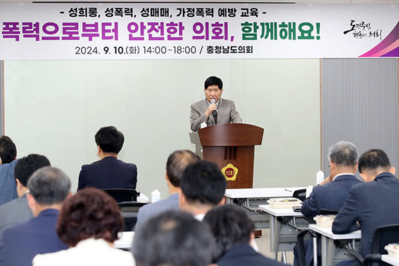 | | ¡è¡è <»çÁøÁ¦°ø=ÃæÃ»³²µµÀÇȸ> | ¨Ï (ÁÖ)¿Â¾ç½Å¹®»ç | | Ãæ³²µµÀÇȸ(ÀÇÀå È«¼ºÇö)´Â 9¿ù 10ÀÏ Ãæ³²µµÀÇȸ ȸÀǽǿ¡¼ µµÀÇ¿ø°ú °ø¹«¿øÀ» ´ë»óÀ¸·Î ¼ºÈñ·Õ¡¤¼º¸Å¸Å¡¤¼ºÆø·Â¡¤°¡Á¤Æø·Â µî 4´ë Æø·Â ¿¹¹æ ±³À°À» ½Ç½ÃÇß´Ù.