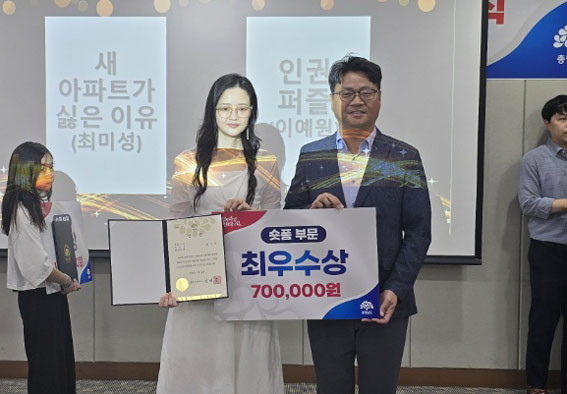 ¼ôÆû ºÎ¹® ÃÖ¿ì¼ö»óÀº ¡â»ç¼ÒÇÑ Àå³(ÀÎõ»ê¾÷Á¤º¸Çб³ ½É¾Æ¿µ Çлý) ¡â»õ ¾ÆÆÄÆ®°¡ ½ÈÀº ÀÌÀ¯(Ãֹ̼º ¾¾) µÎ ÀÛǰÀÌ Â÷ÁöÇß´Ù.