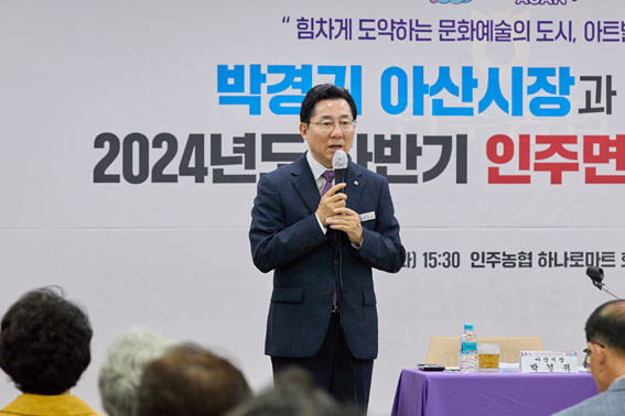¹Ú°æ±Í ½ÃÀåÀº °£´ãȸ ½ÃÀÛ¿¡ ¾Õ¼ ¡°ÀÎÁÖ¸éÀº Ãæ³²µµ º£À̹븮¸Þ°¡½ÃƼÀÇ ÁÖ¿ä ¹«´ëÀÌÀÚ, ¾Æ»ê½Ã ÁßÁ¡ »ç¾÷ÀÎ ÀÎÁÖÀϹݻê¾÷´ÜÁö(3°ø±¸), ¾Æ»êÇ×, ¼Ú¹ú¼¶ °³¹ß µîÀÌ ÁøÇà Áß¡±À̶ó¸é¼ ¡°¾Æ»ê º¯ÈÀÇ Á߽ɿ¡ ÀÎÁÖ°¡ ÀÖ°í, ÀÎÁÖÀÇ ¹Ì·¡¿¡ ¾Æ»êÀÇ ¹Ì·¡°¡ ÀÖ´Ù¡±°í ¸»Çß´Ù.