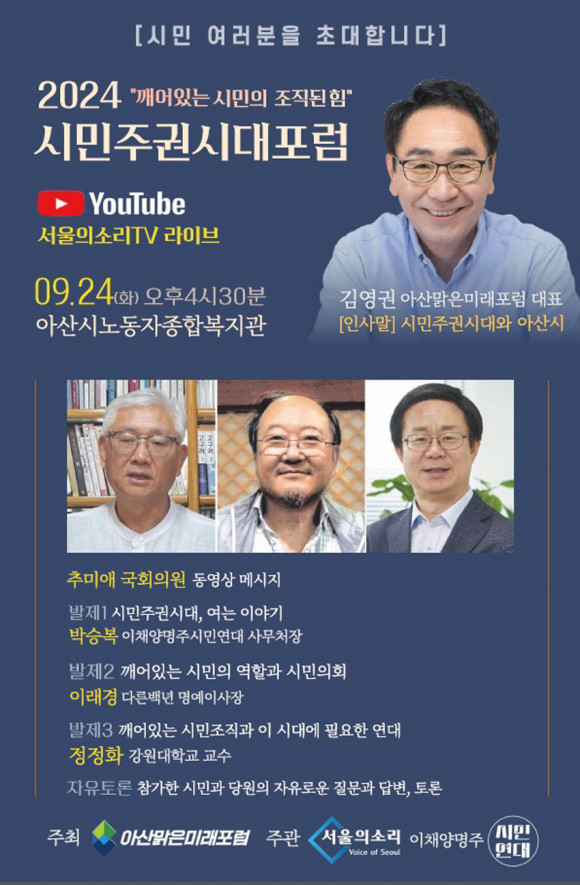 ¡®±ú¾îÀÖ´Â ½Ã¹ÎÀÇ Á¶Á÷µÈ Èû¡¯À» ÁÖÁ¦·Î ½Ã¹ÎµéÀÌ ÁÖµµÇÏ´Â »çȸ º¯È¿Í Á¶Á÷Àû ¿¬´ëÀÇ Á߿伺À» ³íÀÇÇÏ´Â À̹ø Æ÷·³Àº ¾Æ»ê¸¼Àº¹Ì·¡Æ÷·³ÀÌ ÁÖÃÖÇÏ°í ¼¿ïÀǼҸ®¿Í ÀÌä¾ç¸íÁֽùο¬´ë°¡ °øµ¿À¸·Î ÁÖ°üÇÑ´Ù.