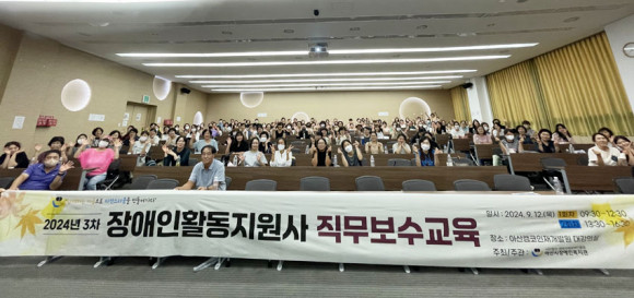 ¾Æ»ê½ÃÀå¾ÖÀκ¹Áö°ü À±Á¤¹® °üÀåÀº £¢À̹ø ±³À°À» ÅëÇØ Ȱµ¿Áö¿ø»çÀÇ ¿ª·® °È¿Í Àå¾ÖÀÎÀ» À§ÇÑ ¼ºñ½º ÁúÀû Çâ»óÀ» µµ¸ðÇÒ ¼ö ÀÖ´Â ½Ã°£ÀÌ µÇ±â¸¦ ¹Ù¶õ´Ù£¢¶ó°í ¸¶À½À» ÀüÇϸç Âü¼®ÇÑ È°µ¿Áö¿ø»çµéÀ» °Ý·ÁÇß´Ù.