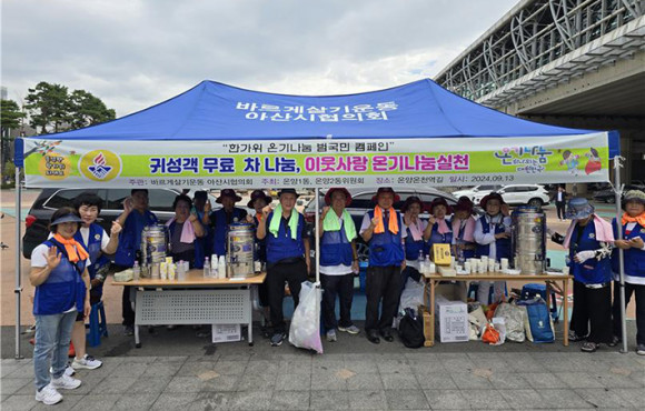 ¹Ù¸£°Ô»ì±â¿îµ¿ ¾Æ»ê½ÃÇùÀÇȸ ȸ¿ø 40¿©¸íÀº ¿Â¾ç¿Âõ¿ª ±¤Àå¿¡¼ ±Í¼º°´ÀÇ ¾È³ç°ú ¾Æ»ê½Ã¸¦ ã¾Æ ÁֽŠ¹æ¹®°´¿¡°Ô ȯ¿µÀÇ Àλç¿Í ÇÔ²² µûµíÇÑ Â÷¿Í, ½Ã¿øÇÑ ¼öÁ¤°ú¸¦ ³ª´²ÁÖ¸ç °íÇâ »ç¶ûÀÇ Á¤°ú ¾ÖÇâ½ÉÀ» ¼±»çÇß´Ù.