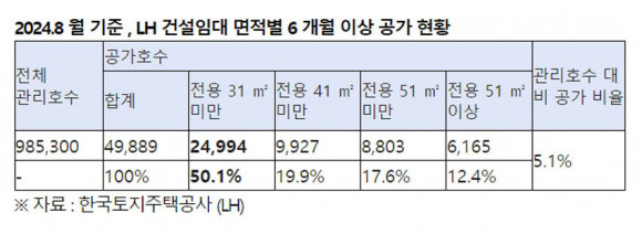 | | ¨Ï (ÁÖ)¿Â¾ç½Å¹®»ç | | ¿ÃÇØ 8¿ù ±âÁØ LH°¡ °ü¸®Çϰí ÀÖ´Â °Ç¼³ÀÓ´ë´Â ÃÑ 98¸¸ 5õ300È£Àε¥, ÀÌ Áß 4¸¸ 9õ889È£(5.1%)°¡ ÇöÀç 6°³¿ù ÀÌ»ó °ø½ÇÀÌ´Ù. 3³â ÀÌ»ó ÃÊÀå±â °ø½Çµµ 3õ910È£(0.4%)³ª µÆ´Ù.