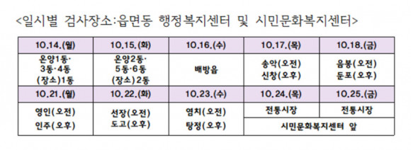 ÇÑÆí À̵¿Çϱ⠾î·Á¿î Àú¿ïÀ̳ª ´Ù¼öÀÇ Àú¿ïÀÌ ÇÑ Àå¼Ò¿¡ ÀÖ´Â °æ¿ì¿¡´Â Àú¿ï ¼ÒÀçÁö¿¡¼ ÃâÀå °Ë»ç°¡ °¡´ÉÇÏ´Ù. ¼ÒÀç°Ë»ç ½ÅûÀÚ¿¡ ´ëÇÑ ÃâÀå °Ë»ç´Â 10¿ù 28ÀϺÎÅÍ 11¿ù 1ÀϱîÁö 5Àϰ£ ÁøÇàÇϸç, 9¿ù ¸»±îÁö ¾Æ»ê½Ãû Áö¿ª°æÁ¦°ú¿¡ ¼ÒÀçÀå¼Ò Á¤±â°Ë»ç ½Åû¼¸¦ Á¦ÃâÇÏ¸é µÈ´Ù.