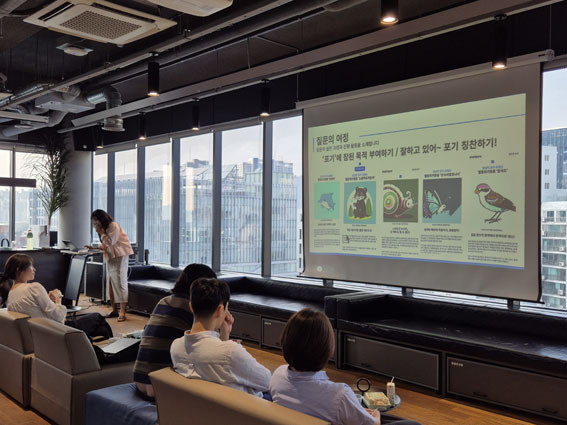 ¸¶Áö¸· 8ÁÖÂ÷´Â °øÀ¯È¸·Î, ÃÊ´ë¼Õ´Ô°ú ÇÔ²² °¢ Á¶ÀÇ ÇöÀç ÁøÇà»óȲÀ» °øÀ¯Çϰí À̾߱⸦ ³ª´³´Ù. ½ÃÀÛÇÒ ¶§ °¢ÀÚ°¡ °®°í ÀÖ´ø Áú¹®Àº ¿©Á¤¿¡¼ º®À» ¸¸³ª Çì¸Å´ø ½Ã°£À» °ÅÃÄ Á¶º°·Î ãÀº ´äº¯°ú ´ë¾ÈÀ¸·Î ä¿öÁ³´Ù.