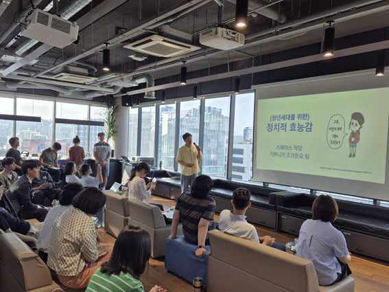 ÀÌÇϳª Âü¿©ÀÚ´Â ¡°³ª¿Í Á¤Ä¡ÀÇ °ü°è¿¡ ´ëÇØ ±í°Ô °í¹ÎÇÏ°í ³íÀÇÇÒ ¼ö ÀÖ´Â ¶æ±íÀº ½Ã°£¡±À̾ú´Ù°í ¹àÇûÀ¸¸ç, ±èµµÇü Âü¿©ÀÚ´Â ¡°Ã»³âµéÀÇ Á¤Ä¡Àû ¹«°ü½É¿¡ ´ëÇÑ (»çȸÀû) ºñ³Àº Àͼ÷Çѵ¥, À̹ø ÇÁ·ÎÁ§Æ®¸¦ ÅëÇØ û³âµéÀÇ Á¤Ä¡Àû È¿´É°¨ÀÌ ¿ì¸® »çȸ¿¡ º¯È¸¦ ÀÏÀ¸Å³ Áß¿äÇÑ Å°¿öµåÀÓÀ» ´À²¼´Ù¡±¶ó°í ¸»ÇØ Âü¿©ÀÚµéÀÇ Á¤Ä¡Àû È¿´É°¨µµ »ó½ÂÇÑ ½Ã°£À̾úÀ½À» º¸¿©ÁÖ¾ú´Ù.