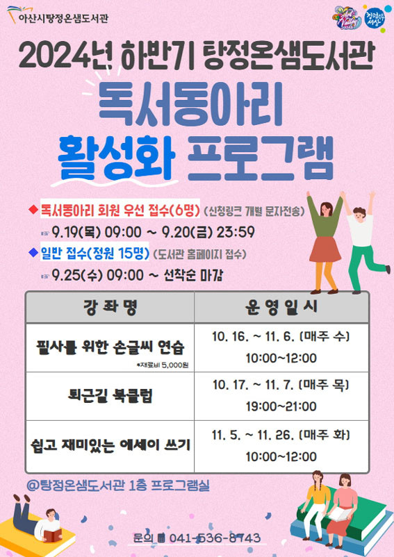 À̹ø ÇϹݱ⿡´Â ¡âÇʻ縦 À§ÇÑ ¼Õ±Û¾¾ ¿¬½À ¡âÅð±Ù±æ ºÏŬ·´ ¡â½±°í Àç¹ÌÀÖ´Â ¿¡¼¼ÀÌ ¾²±â ÇÁ·Î±×·¥ÀÌ ÁøÇàµÇ¸ç, ½ÉÈÀû µ¶¼ Ȱµ¿À» ÅëÇØ µ¶¼ÀÇ Áñ°Å¿òÀ» ¸Àº¸°í ŸÀΰú Ã¥À¸·Î ¼ÒÅëÇÏ´Â ÀåÀÌ µÉ °ÍÀ¸·Î ±â´ëµÈ´Ù.