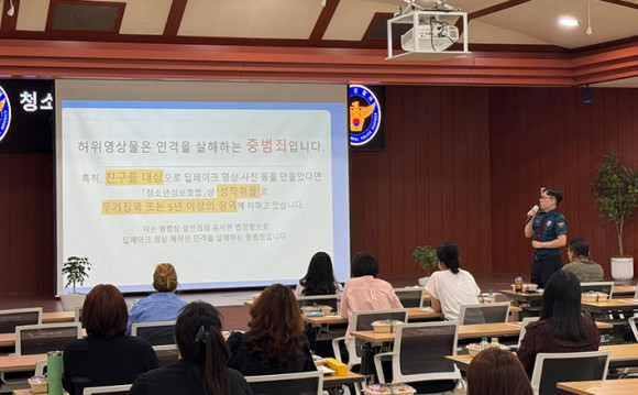 ¾Æ»ê°æÂû¼(¼Àå ±è°æ¿)´Â 24ÀÏ ¾Æ»ê°æÂû¼ Ãæ¹«È¦¿¡¼ °ü³» Çкθð¿Í ½Ã¹Î 50¿©¸íÀ» ´ë»óÀ¸·Î µµ¹Ú, µöÆäÀÌÅ© µî û¼Ò³â »çÀ̹ö¹üÁË ¿¹¹æÀ» À§ÇÑ ¸ÂÃãÇü ´ë¸é ±³À°À» ½Ç½ÃÇß´Ù.