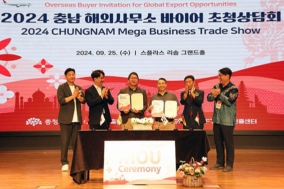 µµ´Â 9¿ù 25ÀÏ ´ö»ê ½ºÇÃ¶ó½º ¸®¼Ø¿¡¼ ÀüÇü½Ä µµ Á¤¹«ºÎÁö»ç¸¦ ºñ·ÔÇØ µµ³» ±â¾÷ °ü°èÀÚ 200¿© ¸í, ÇØ¿Ü»ç¹«¼ÒÀå ¹× ÇØ¿Ü¹ÙÀ̾î 70¿© ¸í µî 300¿© ¸íÀÌ Âü¼®ÇÑ °¡¿îµ¥, ¡®2024 Ãæ³²µµ ÇØ¿Ü»ç¹«¼Ò ÃÊû ¹ÙÀÌ¾î ¼öÃâ»ó´ãȸ¡¯ °³¸·½ÄÀ» °³ÃÖÇß´Ù°í ¹àÇû´Ù.