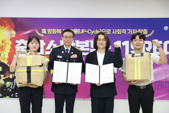±ÇÇõ¹Î ¼Ò¹æº»ºÎÀåÀº ¡°Æó¹æÈº¹ÀÇ ¾÷»çÀÌŬ¸µÀ» ÅëÇØ ÆóÀÚ¿øÀÇ ´Ü¼ø ÀçȰ¿ëÀ» ³Ñ¾î »õ·Î¿î °¡Ä¡¸¦ ºÎ¿©Çϰí ÀÖ´Â 119REO¿Í Çù¾àÀ» ¸Î°Ô µÇ¾î ±â»Ú´Ù¡±¸ç ¡°Æó¹æÈº¹ ¿Ü¿¡µµ ¼Ò¹æÈ£½º¿Í ÇǺ¹ µî ¼ö¸íÀÌ ´ÙÇÑ ¼Ò¹æÀåºñ¸¦ ÀçȰ¿ëÇÒ ¼ö ÀÖµµ·Ï È®´ëÇØ ³ª°¡°Ú´Ù¡±°í ¸»Çß´Ù.