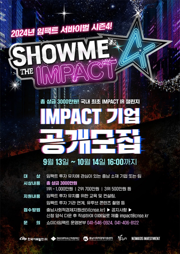 ¡ºSHOW ME THE IMPACT4¡» ÀÓÆÑÆ® IR °æ¿¬´ëȸ¿¡ Âü°¡ÇÑ ÆÀµéÀº ½Å±Ô »ç¾÷ ¾ÆÀÌÅÛÀÇ »çȸÀû°¡Ä¡¿Í Áö¼Ó°¡´É¼ºÀ» Æò°¡ ¹Þ¾Æ, ¡âÃÑ»ó±Ý 3,000¸¸ ¿ø(1À§ 1,000¸¸ ¿ø, 2À§ 700¸¸ ¿ø, 3À§ 500¸¸ ¿ø µî)À» °É°í °æ¿¬À» ÆîÄ¡°Ô µÈ´Ù.