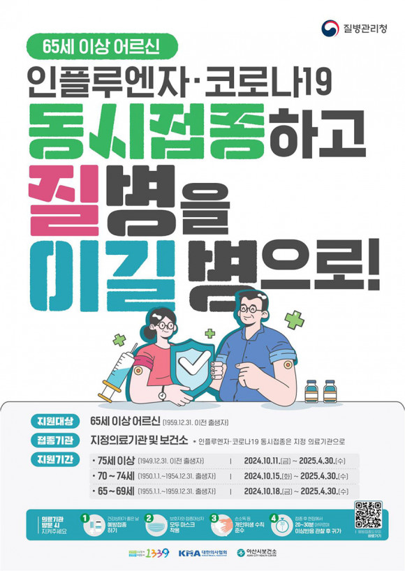 °ü³» ÁöÁ¤ÀÇ·á±â°ü 80¿© °÷¿¡¼ ´çÀÏ Á¢Á¾ÀÌ °¡´ÉÇϸç, 65¼¼ ÀÌ»ó ¾î¸¥½ÅÀº °°Àº ³¯ Á¢Á¾ ºÎÀ§¸¦ ´Þ¸®ÇØ ÀÎÇ÷翣ÀÚ(µ¶°¨) ¹é½Å°ú µ¿½Ã¿¡ ¸ÂÀ» ¼ö ÀÖ´Ù. À̹ø ¿¹¹æÁ¢Á¾Àº ÇöÀç À¯ÇàÇÏ´Â ½Å±Ôº¯ÀÌ(JN.1)¿¡ È¿°úÀûÀÎ ¹é½Å(ÈÀÌÀÚ¡¤¸ð´õ³ª¡¤³ë¹Ù¹é½º)ÀÌ »ç¿ëµÈ´Ù.