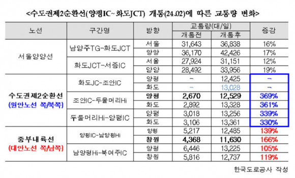 ȵµ~Á¶¾È ¿¬°á ÀÌÈÄ ¾ç¼¸é µÎ¹°¸Ó¸®ÀÇ ±³Åë·®ÀÌ Å©°Ô ´Ã¾î³ µ¥ µû¸¥ °ÍÀÌ´Ù. º¯°æµÈ °»ó¸é Á¾Á¡¾ÈÀº ¼¿ï-¾çÆò°í¼Óµµ·ÎÀÇ º»·¡ ÃëÁöÀÎ µÎ¹°¸Ó¸® Àα٠¹× µÎ¹°¸Ó¸®·Î ÇâÇÏ´Â 6¹ø ±¹µµÀÇ Á¤Ã¼ ÇØ¼Ò¿¡ µµ¿òÀÌ µÇÁö ¾Ê´Â´Ù´Â ÁöÀûÀ» ¹Þ¾Æ¿Â ¹Ù ÀÖ´Ù.