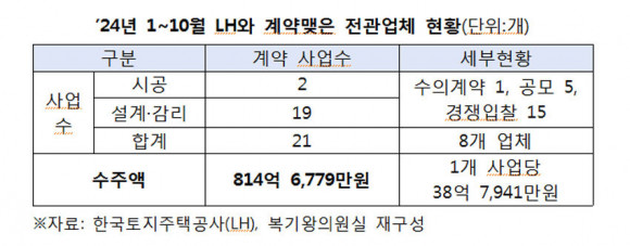 ÇÏÁö¸¸, ÇØ´ç Àü°ü¾÷ü°¡ ¹ý¿ø¿¡ °¡Ã³ºÐÀ» ½ÅÃ»ÇØ ÀοëµÇ´Â °æ¿ì¿¡´Â ¿ë¿ª ÀÔÂû°ú ¼öÀǰè¾à, ¼³°è°ø¸ð Âü¿© µîÀ» Á¦ÇÑÇÒ ¹ýÀû ±Ù°Å°¡ ¾ø°í, ÀÌ¿¡ µû¶ó ¿ÃÇØ 10¿ù±îÁö 8°³ ¾÷ü°¡ LH ¿ë¿ª»ç¾÷ 21°ÇÀ» ¼öÁÖ¹ÞÀº °ÍÀÌ´Ù.