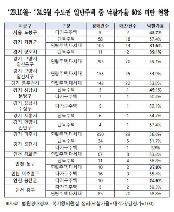 ÃÖ±Ù 1³â°£ ¹ý¿ø°æ¸ÅÁ¤º¸¿¡ µû¸£¸é, ¼öµµ±Ç Áö¿ª¿¡¼ ÀϹÝÁÖÅÃÀÇ ³«Âû°¡À²ÀÌ 60% ¹Ì¸¸ÀÎ °æ¿ì°¡ 17°÷¿¡¼ ³ªÅ¸³µ´Ù.