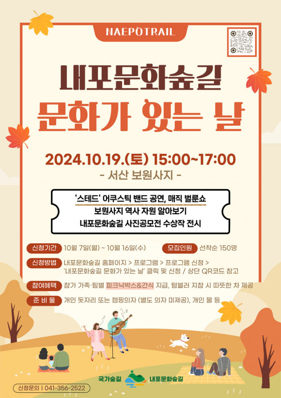 ½ÅûÀº 16ÀϱîÁö ³»Æ÷¹®È½£±æ ´©¸®Áý(www.naepotrail.org)À» ÅëÇØ ÇÒ ¼ö ÀÖÀ¸¸ç, ÀÚ¼¼ÇÑ »çÇ×Àº ´©¸®Áý °ø°í¹®À» È®ÀÎÇϰųª ÀüÈ(041-356-2522)·Î ¹®ÀÇÇÏ¸é µÈ´Ù.