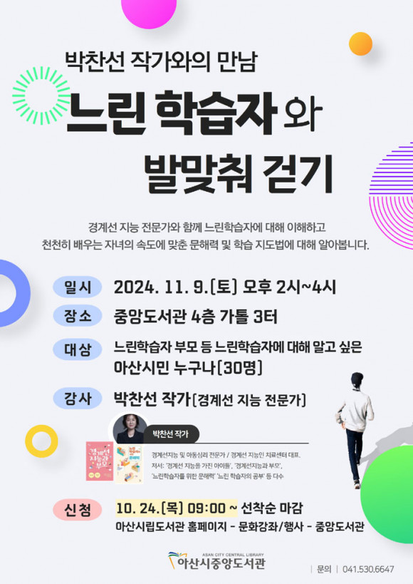 ¾Æ»ê½Ã¸³µµ¼°üÀº 11¿ù 9ÀÏ ¾Æ»ê½Ã Áß¾Óµµ¼°ü¿¡¼ ¡®´À¸°ÇнÀÀÚ¡¯ ¾Æµ¿°ú ¾çÀ°ÀÚ ¹× ÁÖº¯ÀεéÀ» À§ÇÑ ¡®¹ÚÂù¼± ÀÛ°¡¿ÍÀÇ ¸¸³² - ´À¸° ÇнÀÀÚ¿Í ¹ß¸ÂÃç °È±â¡¯¸¦ °³ÃÖÇÑ´Ù.