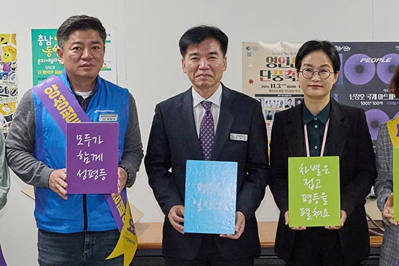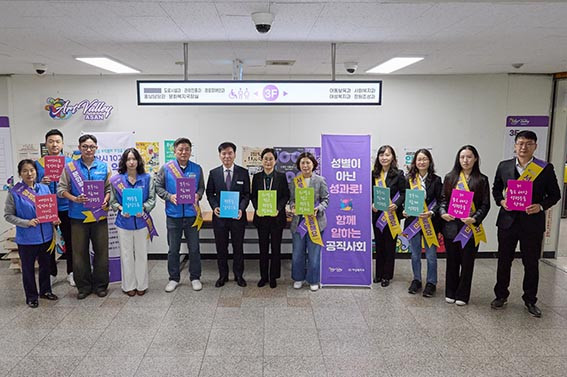 À̳¯ Ä·ÆäÀÎÀº ¾Æ»ê½Ã °ø¹«¿ø³ëÁ¶ ÀÓ¿ø°ú ¿©¼ºº¹Áö°ú Á÷¿øµéÀÌ Âü¿©ÇØ Á¶Á÷ ³» ¼ºº°¿¡ ´ëÇÑ °íÁ¤°ü³ä°ú Æí°ßÀ» ¾ø¾Ö°í, ¼ºÈñ·Õ ¿¹¹æ ¹× ¾ÈÀüÇϰí Â÷º° ¾ø´Â ±Ù¹«È¯°æ Á¶¼ºÀ» À§ÇØ ½Ç½ÃµÆ´Ù.