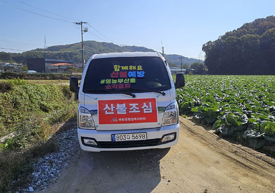 ¶ÇÇÑ ¹è¹æ»ê°ú ¼³È»ê µî »ê¸²°ú ¿¬Á¢ÇÏ¿© »êºÒ¿¡ Ãë¾àÇÑ ¸¶À»À» Áß½ÉÀ¸·Î´Â »êºÒ¿¹¹æ ¾È³»¹æ¼ÛÀ» ½Ç½ÃÇϰí, ¸¶À» ±¸¼®±¸¼®±îÁö È«º¸¸¦ Àü°³ÇÒ ¼ö ÀÖµµ·Ï »êºÒ ¹æÁö Çö¼ö¸·À» °ü¿ë Â÷·®¿¡ ¼³Ä¡Çß´Ù.