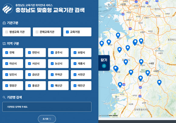 ƯÈ÷ ¡ãÃֽеðÀÚÀÎ Æ®·»µå¸¦ ¹Ý¿µÇÏ°í ¡ã»ç¿ëÀÚÀÇ À§Ä¡¸¦ ±â¹ÝÀ¸·Î ÇÑ Áöµµ ¼ºñ½º Á¦°øÀ¸·Î µµ¹Î ´©±¸³ª ½±°Ô ±³À°±â°üÀ» ã¾Æº¼ ¼ö ÀÖµµ·Ï ÇÏ¿´À¸¸ç, ¡ãÃæ³²ÀÇ 15°³ ½Ã¡¤±º Æò»ýÇнÀ¼¾ÅÍ¿Í Ãæ³²±³À°Ã» °ÁÂÁ¤º¸µµ API ¿¬°è¸¦ ÅëÇØ ÇÑ °÷¿¡¼ È®ÀÎÇÒ ¼ö ÀÖ´Ù.