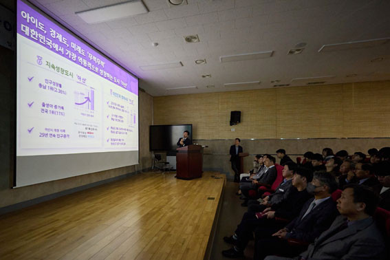 À¯¿ø´ëÇб³ ÀçÇлý 120¸íÀ» ´ë»óÀ¸·Î ÁøÇàµÈ À̳¯ Ư°¿¡¼ Á¶Àϱ³ ±ÇÇÑ´ëÇàÀº ¡°Ãæ³²ÀÇ Ãֺϴܿ¡ À§Ä¡ÇÑ ¾Æ»ê½Ã´Â ¡®29³â ¿¬¼Ó Àα¸ Áõ°¡¡¯, ¡®Àü±¹ ±âÃÊÀÚÄ¡´Üü Áß ¼öÃâ 1À§¡¯¿¡ ºû³ª´Â ´ëÇѹα¹¿¡¼ °¡Àå ¿ªµ¿ÀûÀ¸·Î ¼ºÀåÇϰí ÀÖ´Â µµ½Ã¡±¶ó°í ¼³¸íÇß´Ù.