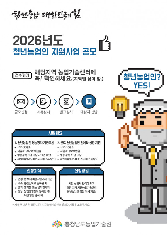 Ãæ³²µµ ³ó¾÷±â¼ú¿øÀº ¡®2026³â û³â³ó¾÷ÀÎ Áö¿ø»ç¾÷¡¯ °ø¸ð¸¦ ÁøÇà ÁßÀ̶ó°í 9ÀÏ ¹àÇû´Ù.