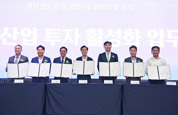´ëÇѹα¹ ¹ÝµµÃ¼ ¼öÃâ¾×ÀÇ 40% °¡±îÀ̸¦ Ã¥ÀÓÁö°í, »ï¼ºÀüÀÚ¿Í ÆÐŰ¡¡¤Å×½ºÆ® 1¡¤2À§ ±â¾÷À» ǰ°í ÀÖ´Â Ãæ³²ÀÌ ¹ÝµµÃ¼»ê¾÷ »ó»ý ¹ßÀü »ýŰè Á¶¼ºÀ» À§ÇØ ±â°ü¡¤±â¾÷µé°ú ÈûÀ» ¸ðÀº´Ù.