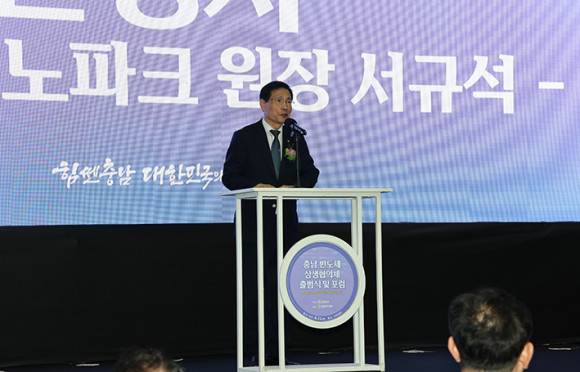 (Àç)Ãæ³²Å×Å©³ëÆÄÅ©(¿øÀå ¼±Ô¼®, ÀÌÇÏ Ãæ³²TP)´Â 11ÀÏ ¿ÀÈÄ 2½Ã, ¾Æ»ê µð¹ÙÀι븮¿¡¼ ¡®Ãæ³² ¹ÝµµÃ¼ »ó»ýÇùÀÇü Ãâ¹ü½Ä ¹× Æ÷·³¡¯À» ¼ºÈ²¸®¿¡ °³ÃÖÇß´Ù°í ¹àÇû´Ù.