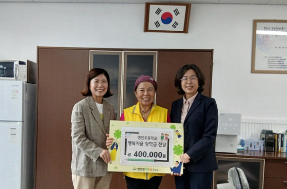 ¾Æ»ê½Ã ¿µÀθé ÇູŰ¿òÃßÁø´Ü(°øµ¿´ÜÀå ±èÀº°æ, ±èÁ¤ÀÚ)Àº Áö³ 23ÀÏ ½ÅÈÃÊ¡¤¿µÀÎÃÊ¡¤¿µÀÎÁßÇб³ Çлýµé¿¡°Ô ÀåÇÐÁõ¼¿Í ÇÔ²² ÇູŰ¿ò ÀåÇбÝÀ» Àü´ÞÇß´Ù.