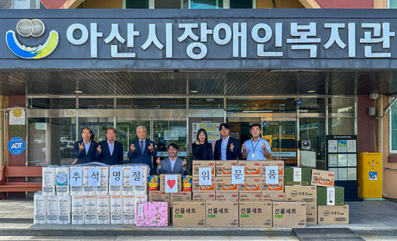 Çѱ¹ÁöüÀå¾ÖÀÎÇùȸ ¾Æ»ê½ÃÀå¾ÖÀκ¹Áö°ü(°üÀå À±Á¤¹®)Àº Áö³ 23ÀÏ Ãµ¾È¡¤¾Æ»ê¹üÁËÇÇÇØÀÚÁö¿ø¼¾ÅͷκÎÅÍ Ãß¼® ¸íÀýÀ» ¸Â¾Æ Áö¿ª Àå¾ÖÀεéÀ» À§ÇÑ ÈÄ¿ø ¹°Ç°À» Àü´Þ¹Þ¾Ò´Ù.