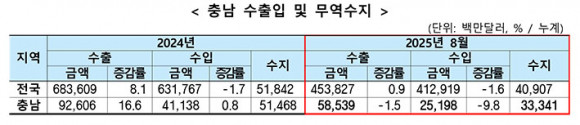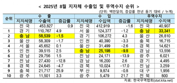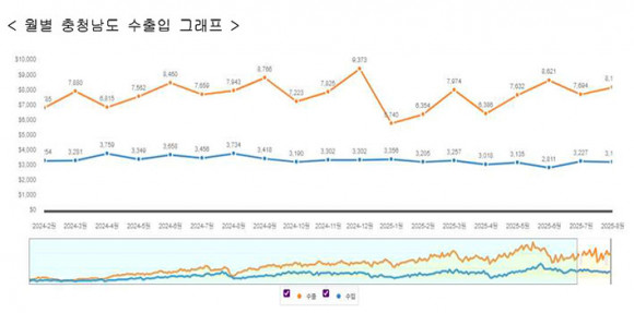 µµ´Â 25ÀÏ ¡®2025³â 8¿ù ÃæÃ»³²µµ ¼öÃâÀÔ µ¿Çâ º¸°í¡¯ ¹ßÇ¥¸¦ ÅëÇØ ¼öÃâ¾× 585¾ï ´Þ·¯, ¼öÀÔ¾× 252¾ï ´Þ·¯¸¦ ±â·ÏÇØ ¹«¿ª¼öÁö 333¾ï ´Þ·¯ ÈæÀÚ¸¦ ´Þ¼ºÇß´Ù°í ¹àÇû´Ù.
