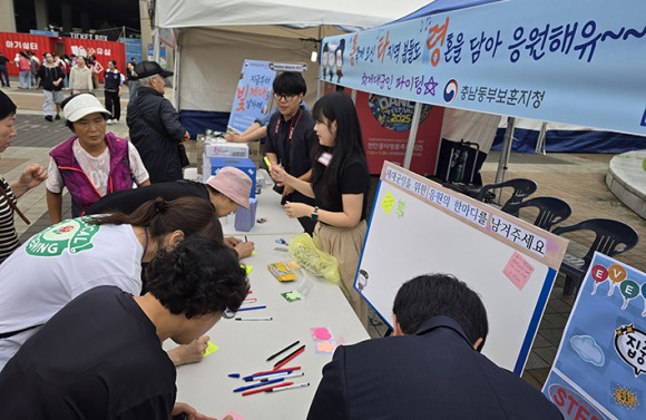 Âü¿©¿Í °ø°¨À» ÅëÇÑ Á¦´ë±ºÀÎÀÇ Æ¯º°ÇÑ Çå½Å¿¡ ´ëÇÑ °¨»ç¹®È ±¸ÃàÀ» À§ÇØ, Ãæ³²µ¿ºÎÁöûÀº õ¾È ÃÖ´ëÃàÁ¦ÀÎ ÈÉÃãÃàÁ¦¿Í ¿¬°èÇÏ¿© ÀÀ¿ø¸Þ½ÃÁö¸¦ ÀÛ¼ºÇÏ´Â ºÐ²² ±ºÀΠij¸¯ÅͰ¡ µé¾î°£ °Ç»§, À½·á, űرâ ۸µ µî ¼±¹° ÁõÁ¤ À̺¥Æ®¸¦ ½Ç½ÃÇÏ¿© ÃàÁ¦¿¡ Âü¿©ÇÏ´Â ½Ã¹ÎµéÀÇ Å« È£ÀÀÀ» ¹Þ¾Ò´Ù.