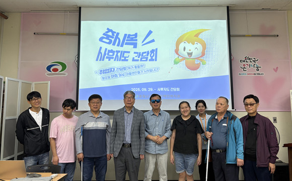 ÃæÃ»³²µµ½Ã°¢Àå¾ÖÀκ¹Áö°ü(°üÀå ¹ÚÀçÈï)Àº 9¿ù 29ÀÏ Ãë¾÷ ¾Ë¼±À» ÅëÇØ Áö¿ª ³» »ç¾÷ü¿¡ Ãë¾÷ÇÑ ½Ã°¢Àå¾ÖÀεé°ú ÇÔ²² »çÈÄÁöµµ °£´ãȸ¸¦ ÁøÇàÇß´Ù.