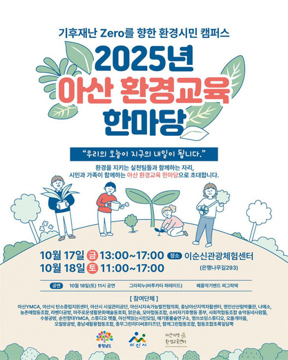 ¡®2025 ¾Æ»ê ȯ°æ±³À° ÇѸ¶´ç¡¯ 10¿ù 17ÀÏ~18ÀÏ °³ÃÖ