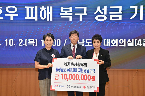 Ãæ³²µµ´Â 2ÀÏ µµÃ»¿¡¼ ¼¼°èÃæÃ»Çâ¿ìȸ¿Í ¼¼°èÃæÃ»Çâ¿ìȸ ¹ÌÁÖ¿¬ÇÕȸ·ÎºÎÅÍ µµ³» È£¿ì ÇÇÇØ º¹±¸¸¦ À§ÇÑ ¼º±Ý °¢°¢ 1000¸¸ ¿ø°ú 3,000´Þ·¯¸¦ Àü´Þ¹Þ¾Ò´Ù.