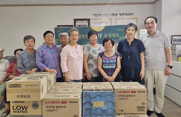 (»ç)¾Æ»ê½Ã±â¾÷ÀÎÇùÀÇȸ(ȸÀå ±è¿î°ï)°¡ Áö³ 1ÀÏ Ãß¼® ¸íÀýÀ» ¸Â¾Æ °ü³» º¹Áö½Ã¼³À» ¹æ¹®ÇØ 820¸¸ ¿ø »ó´çÀÇ ¹°Ç°°ú ÈÄ¿ø±ÝÀ» Àü´ÞÇß´Ù.