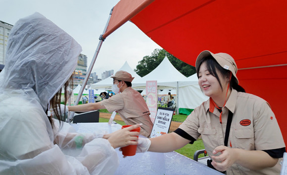 À̹ø ÃàÁ¦´Â °ü¶÷°´µéÀÌ Àܵð¹ç À§¿¡¼ µ¾ÀÚ¸®¸¦ ±ò°í Æí¾ÈÇÏ°Ô Áñ±æ ¼ö ÀÖµµ·Ï ÇÑ ¡®ÇÇÅ©´ÐÇü ÄܼƮ¡¯·Î ¿î¿µÇßÀ¸¸ç, ¡®Æ®·¡½¬¹ö½ºÅÍÁ, ¡®¼öÆÛºó¡¯ µî ģȯ°æ ±â¾÷°ú Çù¾÷ÇØ ´Ùȸ¿ë±â »ç¿ëÀ» Àǹ«ÈÇϰí ÀÏȸ¿ëǰ »ç¿ëÀ» ÃÖ¼ÒÈÇß´Ù.
