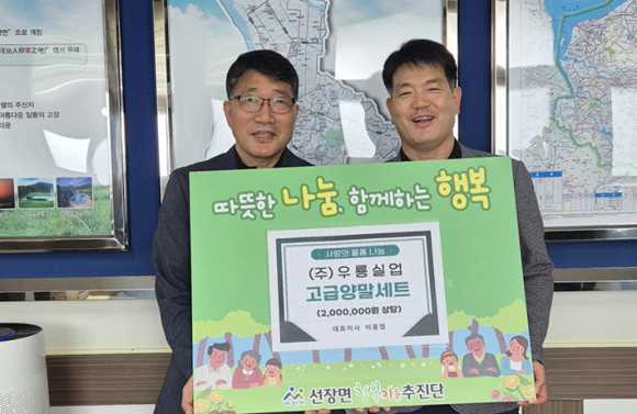 ¾Æ»ê½Ã ¼±Àå¸é ÇູŰ¿òÃßÁø´Ü(°ø°ø´ÜÀå ÀÌÁ¤Áø, ¹Î°£´ÜÀå ±èÁøÈ)Àº ¢ß¿ì·æ½Ç¾÷(´ëÇ¥ÀÌ»ç ÀÌÈ«¿±)À¸·ÎºÎÅÍ 200¸¸ ¿ø »ó´çÀÇ °í±Þ ¾ç¸» ¼¼Æ®¸¦ ÈÄ¿ø¹Þ¾Æ °ü³» Àú¼Òµæ Ãë¾à°èÃþ¿¡ Àü´ÞÇß´Ù.