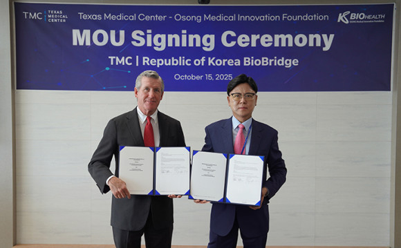 ¿À¼Û÷´ÜÀÇ·á»ê¾÷ÁøÈïÀç´Ü(KBIOHealth¡¤ÀÌ»çÀå À̸í¼ö)ÀÌ 15ÀÏ(¼ö), ¹Ì±¹ ÅØ»ç½º ¸ÞµðÄà ¼¾ÅÍ(TMC¡¤È¸Àå Àª¸®¾ö ¸ÆÄÁ)¿Í Àü·«Àû ¾÷¹«Çù¾à(MOU)À» ü°áÇϰí, ÇÑ¹Ì ¾ç±¹ °£ ¹ÙÀÌ¿ÀÇコ »ê¾÷ÀÇ ±Û·Î¹ú Çù·Â È®´ë¸¦ À§ÇÑ º»°ÝÀûÀÎ Çù·Â ü°è¸¦ ±¸ÃàÇÑ´Ù°í ¹àÇû´Ù.