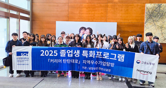 ¼øÃµÇâ´ë(ÃÑÀå ¼Ûº´±¹) ´ëÇÐÀÏÀÚ¸®Ç÷¯½º¼¾ÅÍ(¼¾ÅÍÀå ¾È°æ¾Ö)´Â Áö³ 9¿ù Á¹¾÷»ýƯÈÇÁ·Î±×·¥ ¡®Ä¿¸®¾î źź´ë·Î¡¯ÀÇ ÀÏȯÀ¸·Î ³²¾çÀ¯¾÷ õ¾È½Å°øÀåÀ» ¹æ¹®ÇØ Áö¿ª ¿ì¼ö±â¾÷ °ßÇÐ ÇÁ·Î±×·¥À» ¿î¿µÇß´Ù.